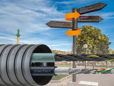 Som en del af Smart City-initiativet med Stuttgart-Marketing GmbH har Funkwerk Systems GmbH udviklet et topmoderne informations- og vejledningssystem til fodgængere, som ændrer den måde, fodgængere udforsker bymiljøer på. Guiden bevæger sig hvert tredje minut og gør opmærksom på begivenheder på centrale steder i Stuttgarts bymidte. Dette banebrydende projekt fik en andenplads i den tyske turismepris i 2023. Den er afhængig af den tredimensionelle triflex R-energikæde og de meget fleksible chainflex-kabler fra igus for at sørge for en jævn og pålidelig drift.