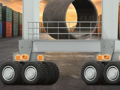 Håndtering af containere døgnet rundt under ekstreme forhold – det er den daglige rutine for STS-, RMG- og RTG-kraner i havne over hele verden. Men for tidlig slitage og nedbrud af hjul- og akselenhederne, bogierne, er en enorm belastning for operatørerne. I Rotterdam præsenterer igus en løsning på TOC Europe fra 11. til 13. juni 2024: viklede, smørefrie og korrosionsbestandige polymerlejer fra igutex-serien til tunge anvendelser.
