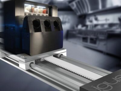 Robotkøkkenet fra det franske firma Cook-e tilbereder friske, sunde retter uden menneskelig hjælp og skal aflaste restauratørerne for det pres, der er forbundet med manglen på faglært arbejdskraft. For at gøre det muligt for robotten at arbejde selv i restauranter med lidt plads, bruger udviklerne kompakte, hygiejniske igus tandremsakser.