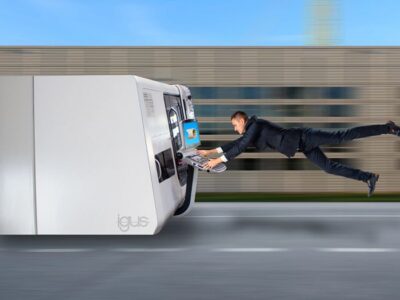 Den nye igus lineære clip-on slæde er den eneste af sin slags i verden. Den kan monteres direkte på den lineære skinne, fjernes og låses på plads med et spændegreb på få sekunder. Det er en praktisk måde at transportere f.eks. styrepaneler, kamerasystemer, måle- og testenheder og værktøj på.