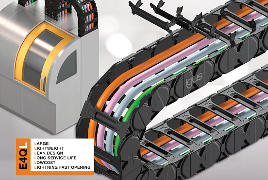 Ny tilføjelse til igus’ energikædesortiment: E4Q, en globalt gennemprøvet energikæde til applikationer med store fritbærende længder og høj fyldningsvægt, har nu en ny variant: “L”. Brugere, for hvem E4Q er for stor, kan nu spare op til 20 % på omkostningerne med E4Q.64L. De vil stadig nyde godt af fordelene ved dens storebror, som hurtig åbning uden brug af værktøj.