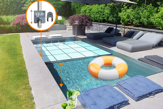 Med et tryk på en knap forvandles en luksus-swimmingpool til en walk-in-terrasse. Nøglen er en bevægelig poolbund fra Conmag Engineering. Men hvilken lineær teknologi fungerer pålideligt og med lille vedligeholdelse under vand? Ingeniørerne fandt svaret hos igus og sparede 30.000 euro pr. pool.